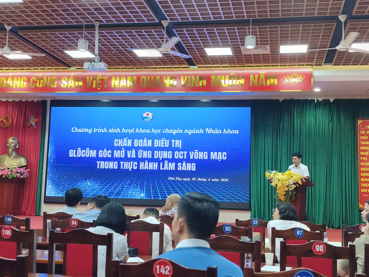 Ngày 03/4/2026, Bệnh viện Mắt Trung ương phối hợp với Bệnh viện Đa khoa tỉnh Vĩnh Phúc tổ chức hội thảo khoa học chuyên ngành nhãn khoa với chủ đề “Chẩn đoán, điều trị Glôcôm góc mở và ứng dụng OCT võng mạc”. Bên cạnh đó, hai đơn vị đã tổ chức trận bóng đá giao hữu, góp phần tăng cường gắn kết và hưởng ứng Ngày Sức khỏe Toàn dân.