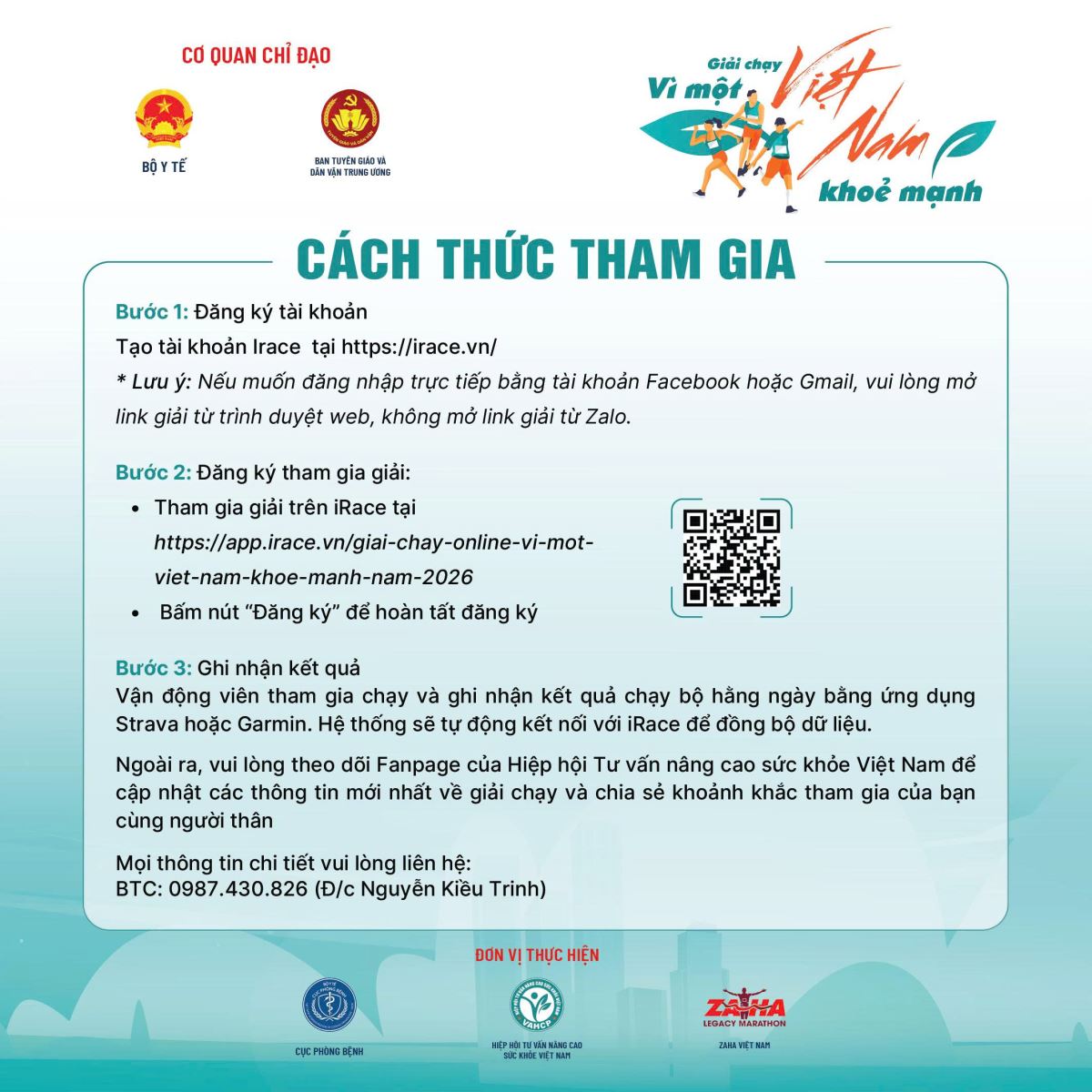 Trước đó, hưởng ứng lời kêu gọi của Ban Tuyên giáo và Dân vận Trung ương và Bộ Y tế, Bệnh viện Mắt Trung ương đã kêu gọi cán bộ, viên chức hưởng ứng và tham gia Giải chạy trực tuyến “Vì một Việt Nam khỏe mạnh” diễn ra từ ngày 14/3 đến 01/4/2026. Giải chạy cho phép người tham gia chạy bộ hoặc đi bộ tại bất kỳ địa điểm nào, với quãng đường tối thiểu 740m mỗi lần, được ghi nhận qua các thiết bị thông minh. Thành tích được tính bằng tổng số km tích lũy và hiển thị trên bảng xếp hạng trực tuyến.